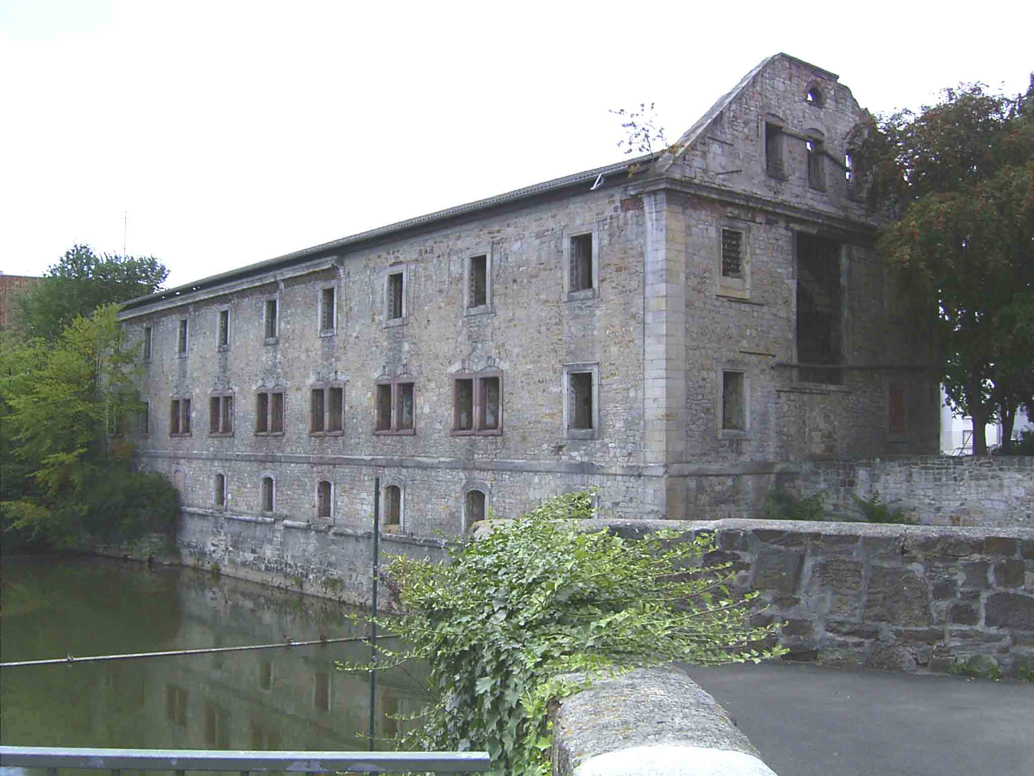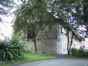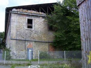 Schießscharten erkennbar sind. Die Mauer setzte sich bis zum Neubau des