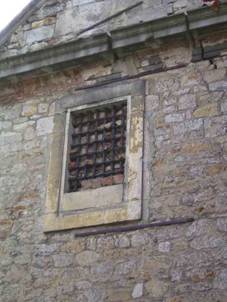weisen noch die Verankerungen der Gitterstäbe auf. Ursprünglich hatten diese