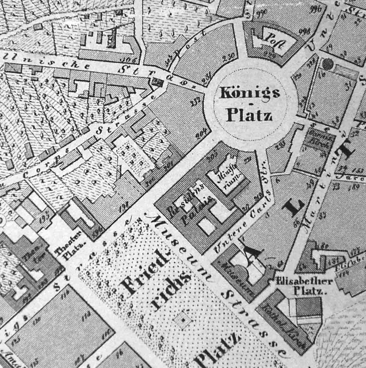 in Richtung zum Königsplatz grenzt das Ministerium an
