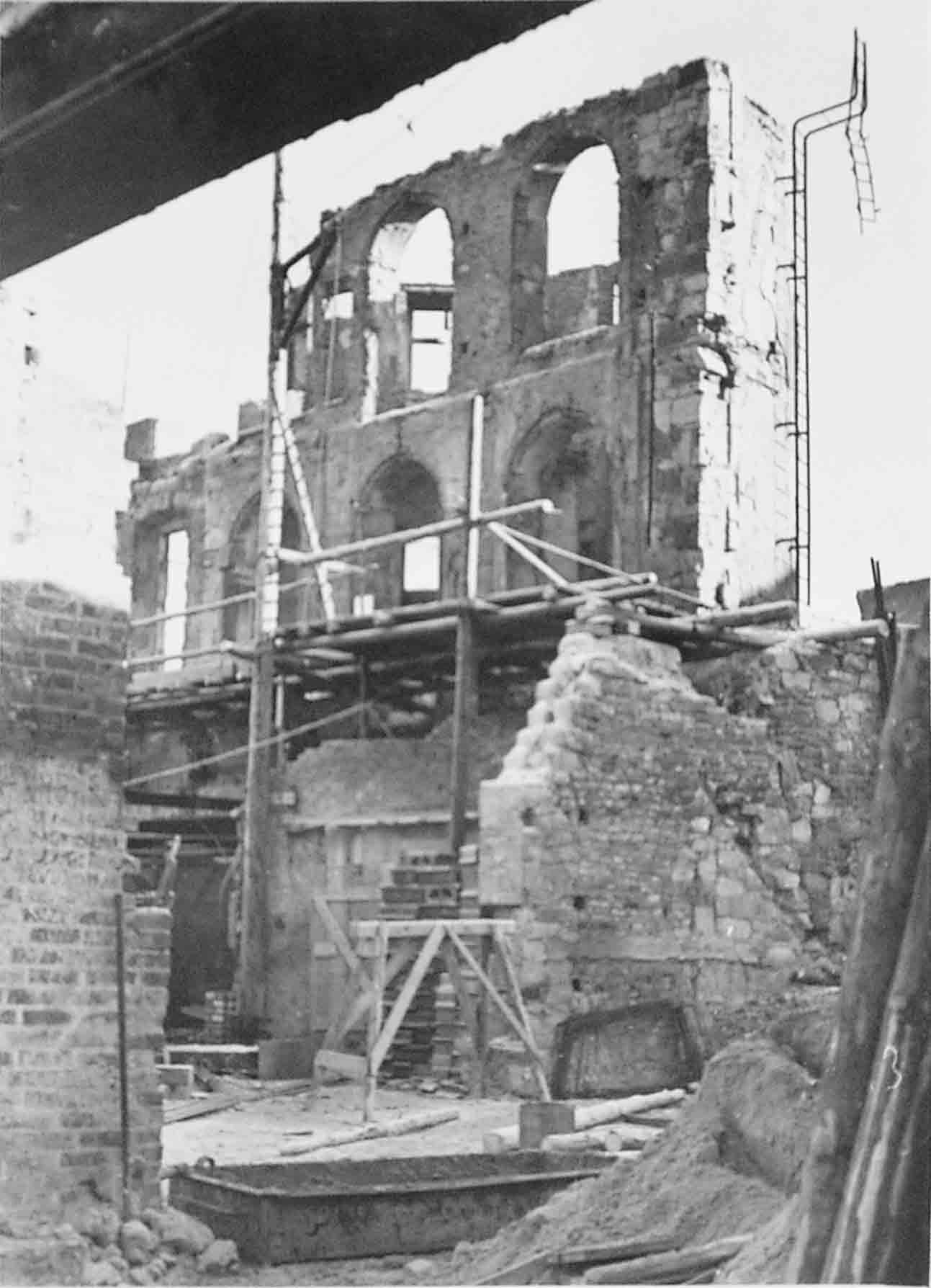 getroffen und brannte aus. Der Wiederaufbau nach 1945 bezog die erhaltenen