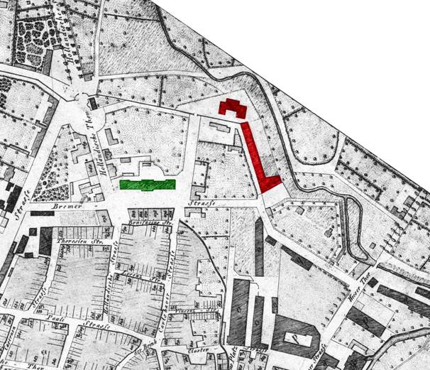 übrigen eine auffallend exakte Entsprechung im Stadtplan von 1822 (vgl. oben):