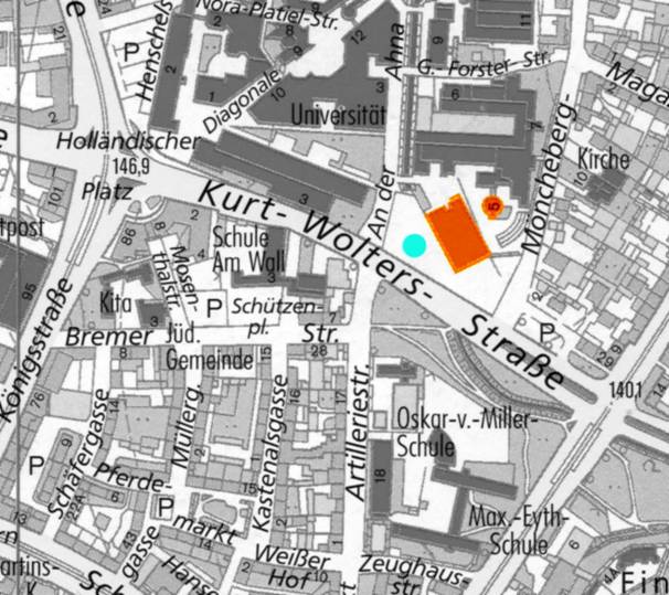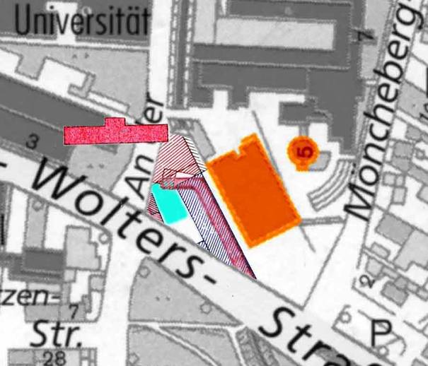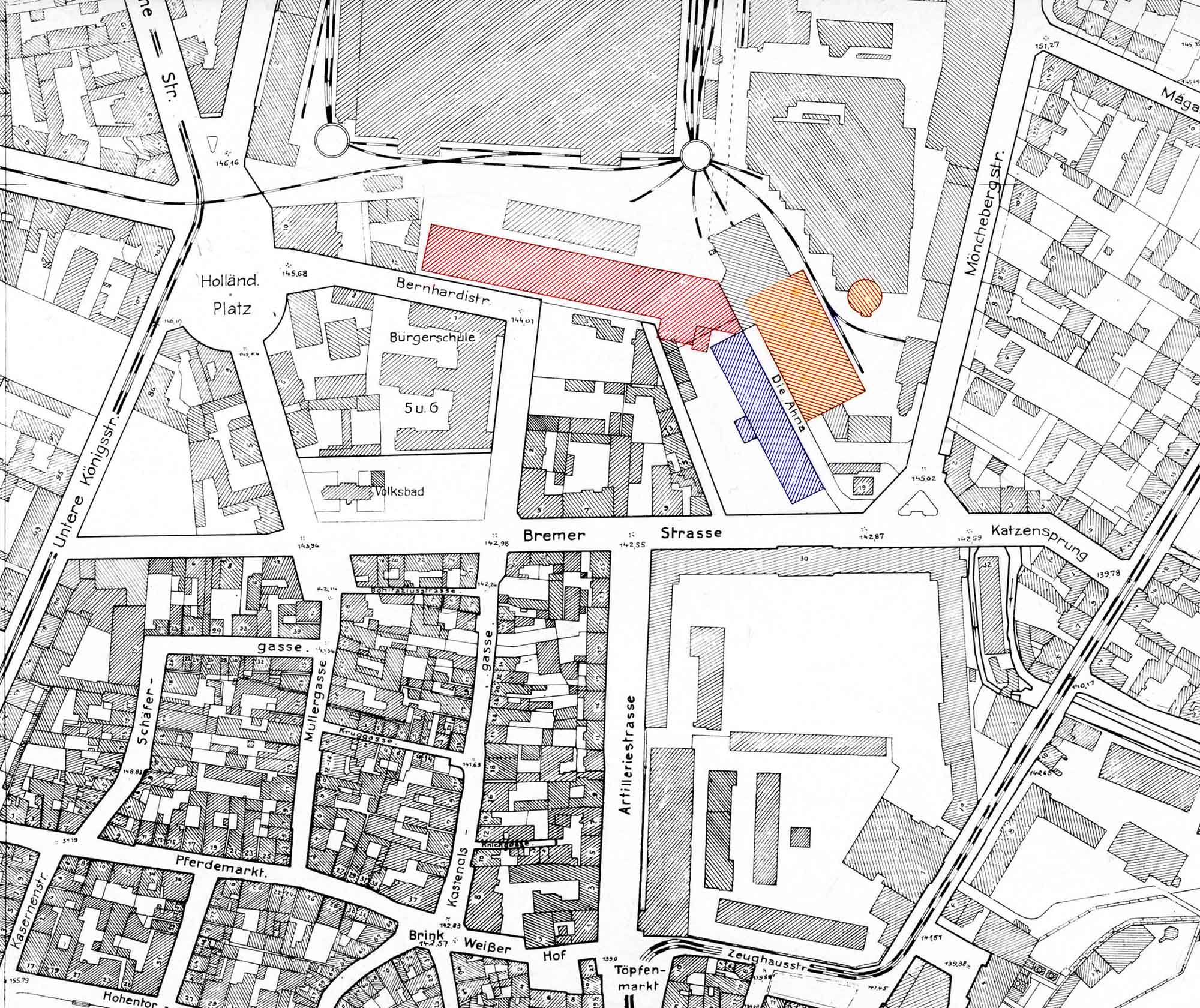 reichte (vgl. oben den Stadtplan von 1943) und unter deren Fundamenten 2008