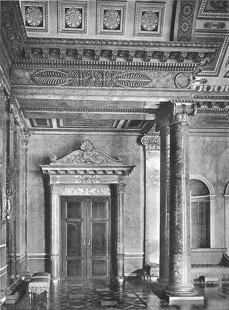 Stuckmarmor. Decke und Fries waren bunt bemalt.
