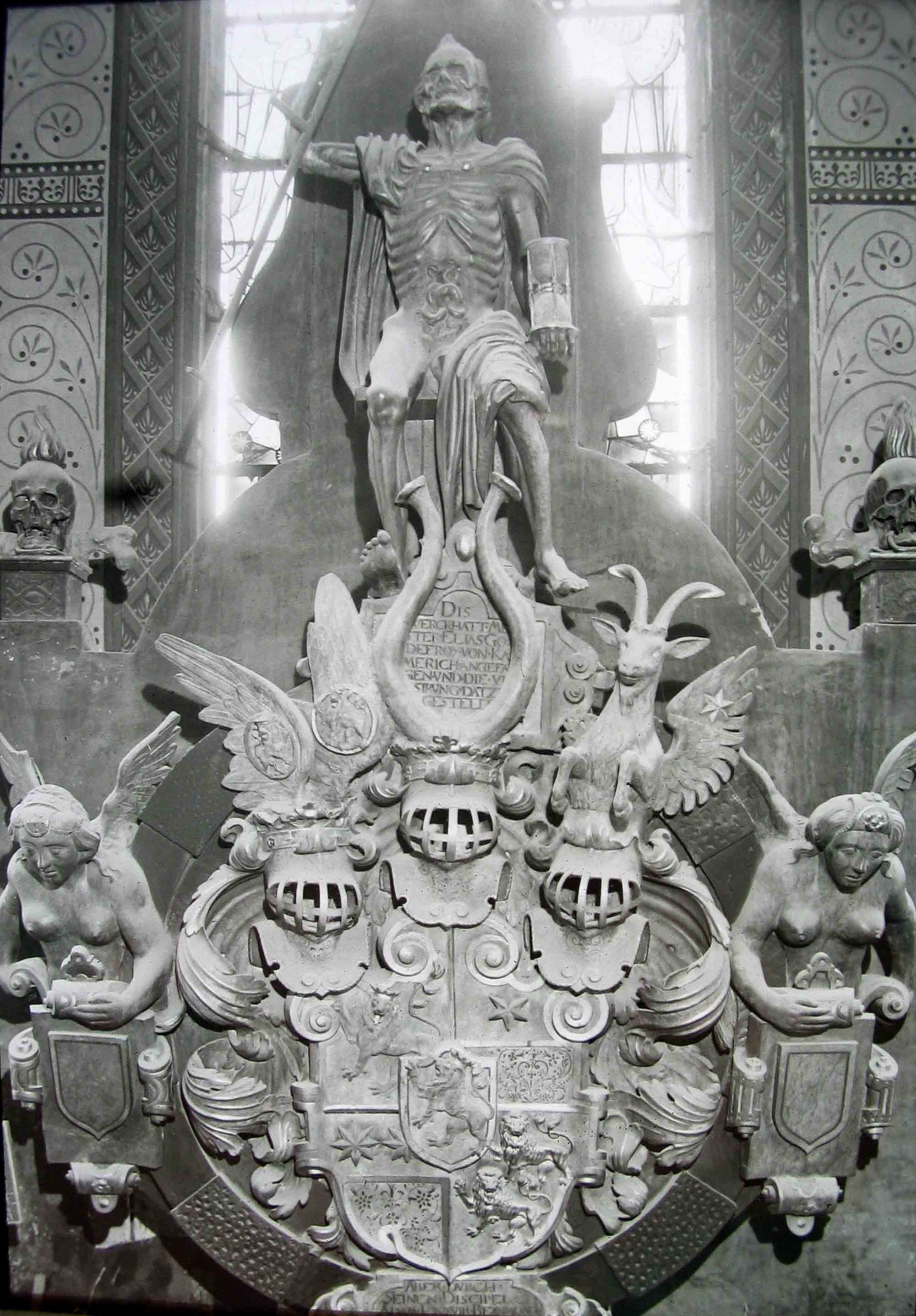 Totenschädeln, die Helmzier des landgräflichen Wappens, sowie (auf dem
