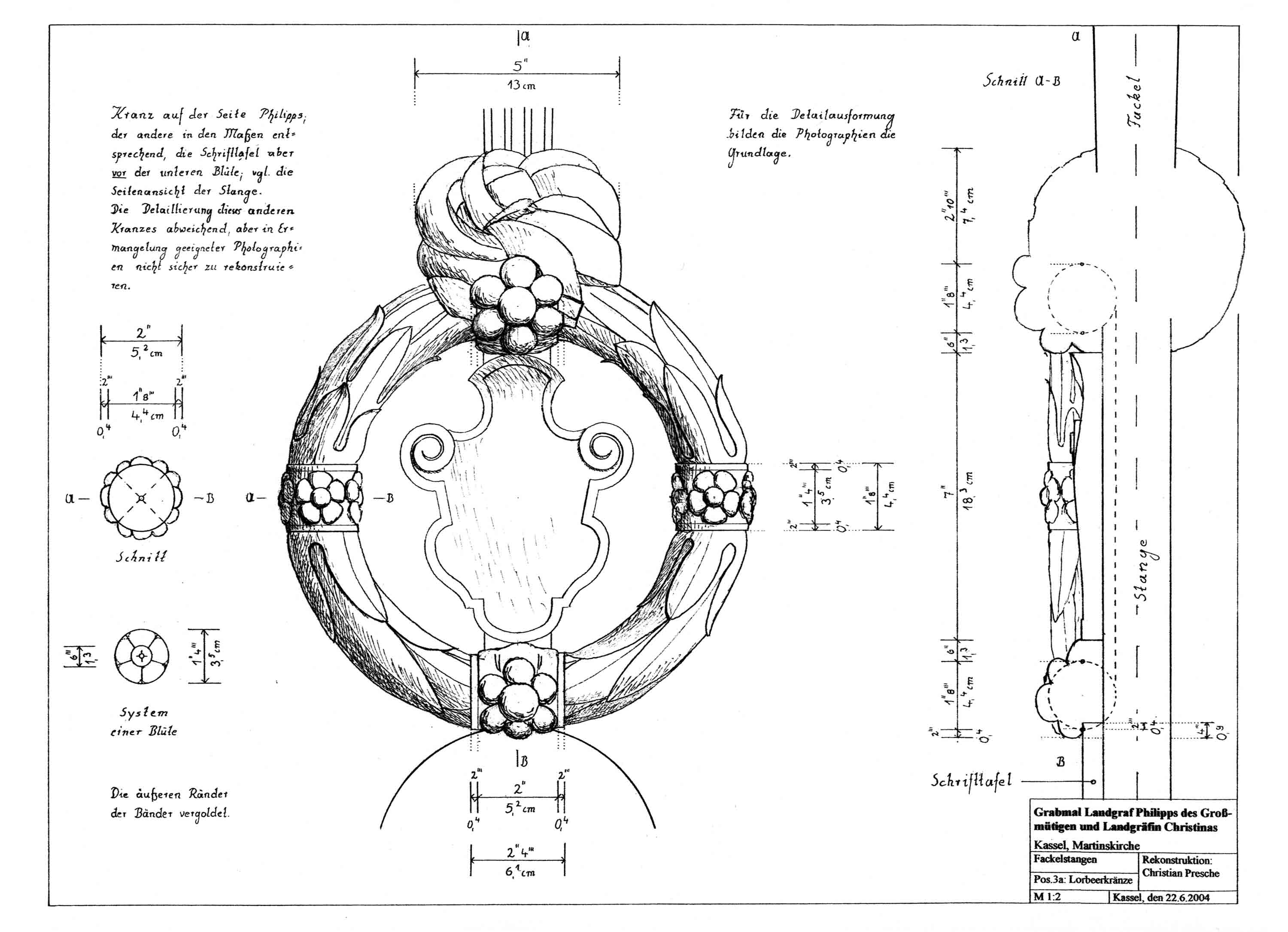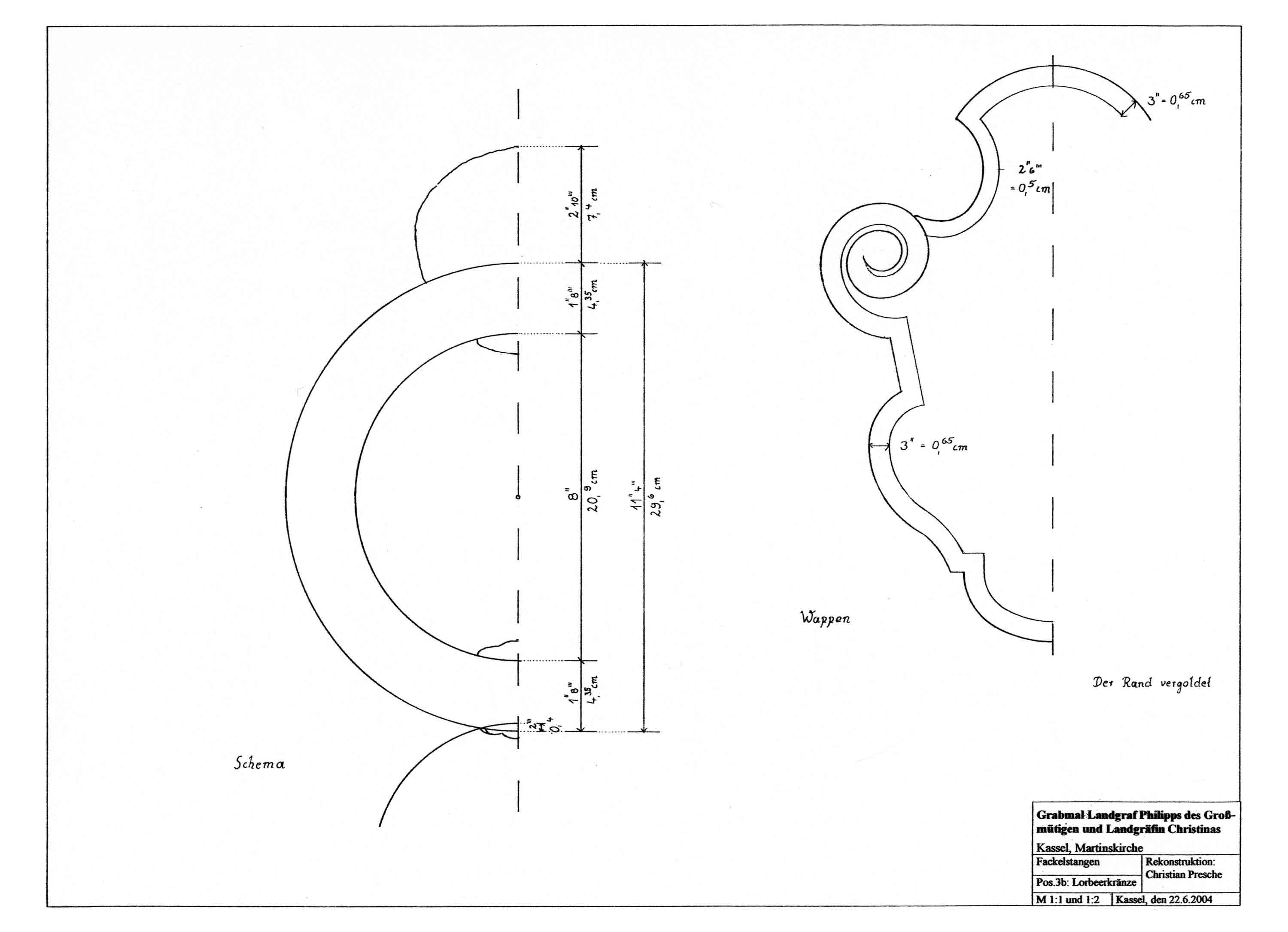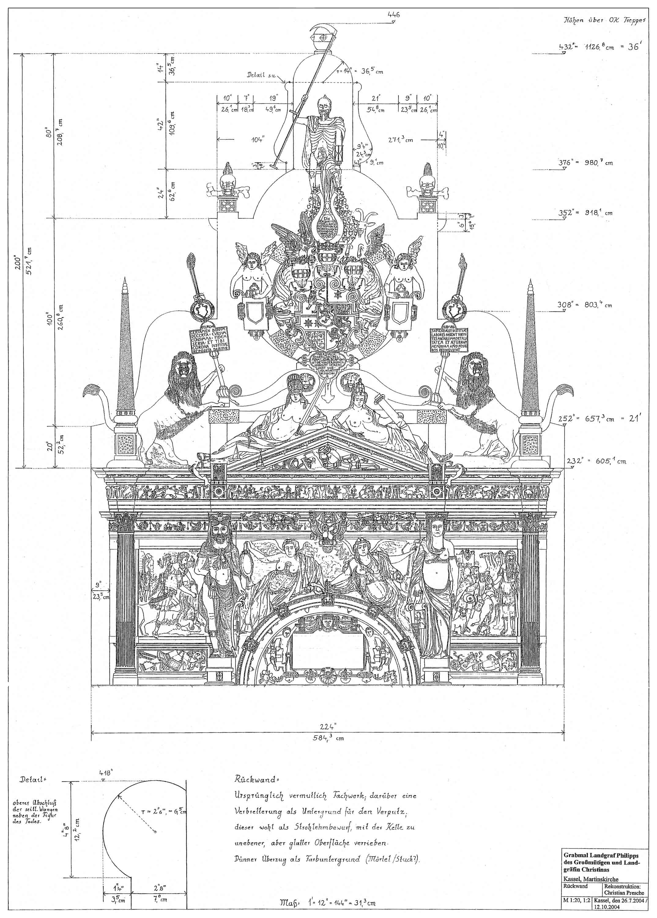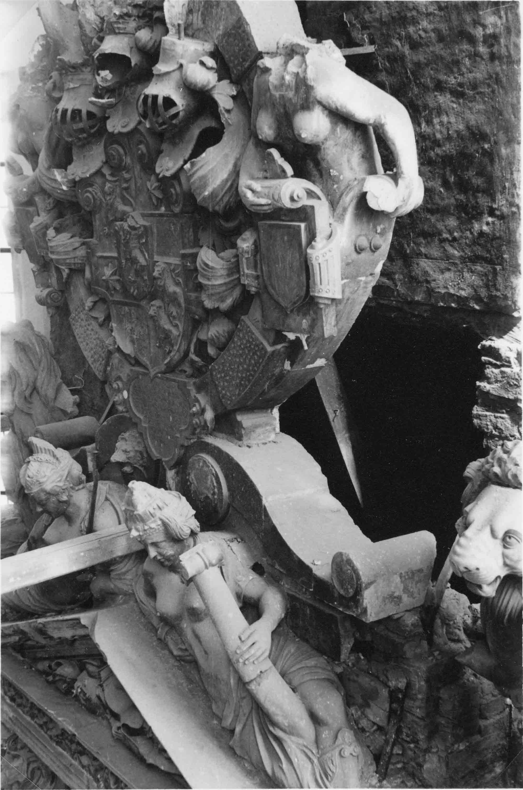 die heute fehlenden Teile des Rankenwerks (Helmdecke) in der großen Wappenkartusche noch vorhanden waren; sie sind erst