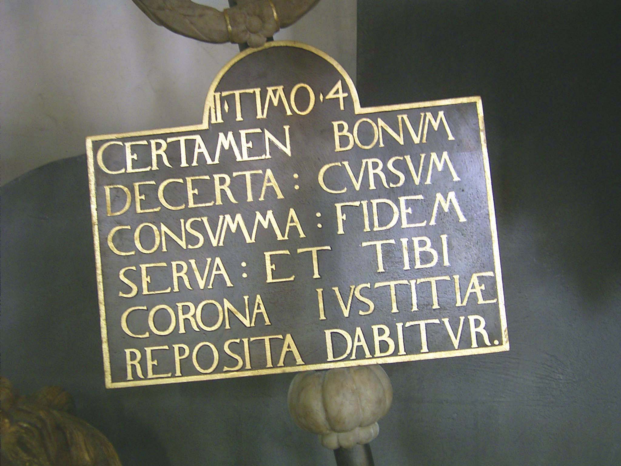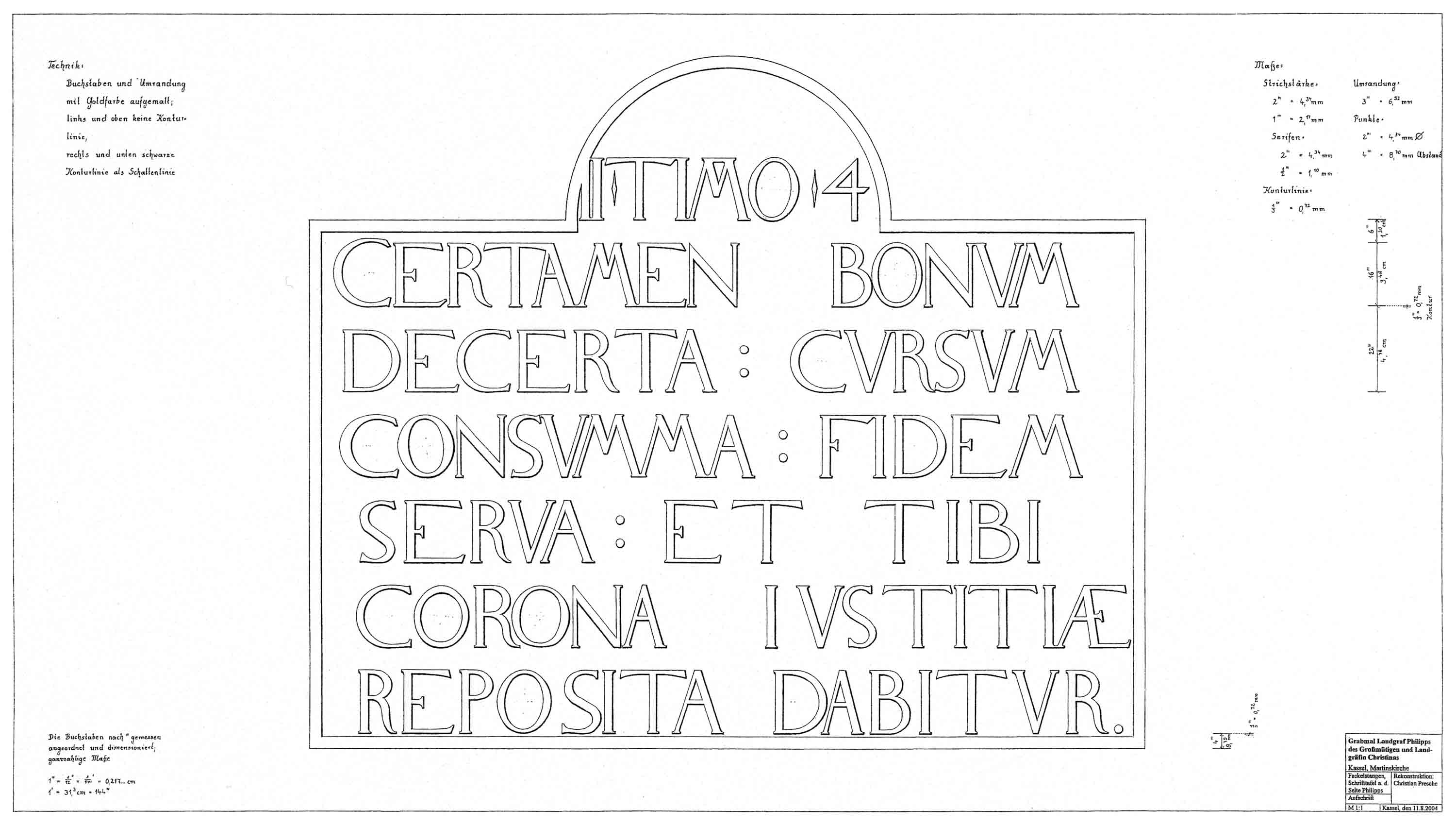 historischen Optik in Bronze ausgeführt. Die Schrift ist mit Blattgold