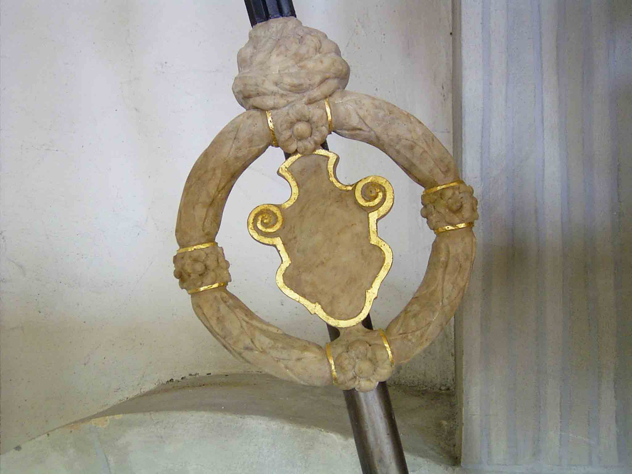 Marmor, unterhalb der Voluten, ist in Anlehnung an die Ansätze