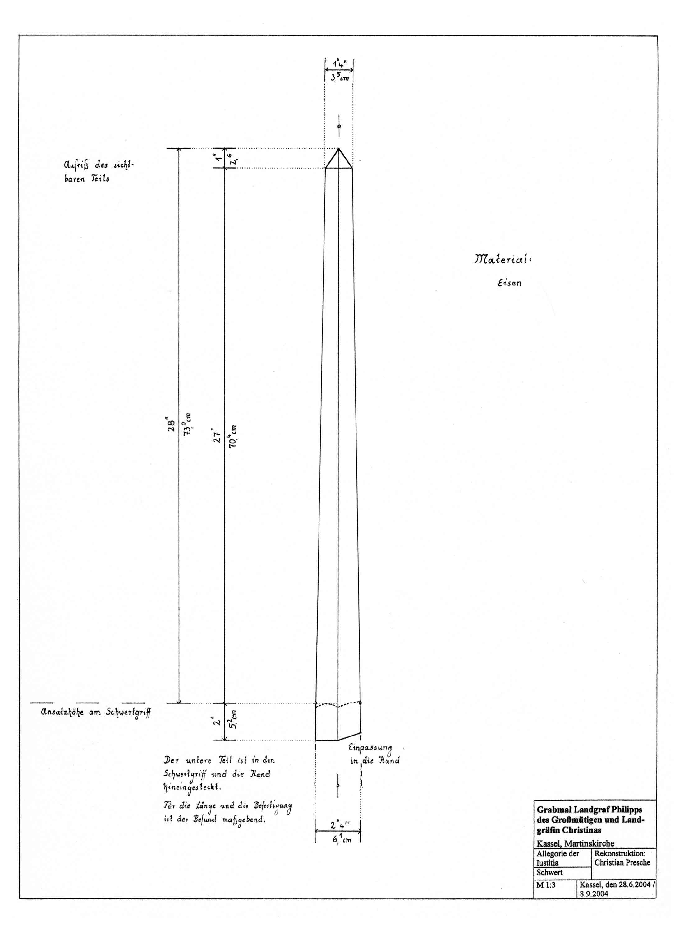 rechten Unterarm; das Schwert ist vermutlich durch die