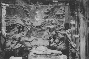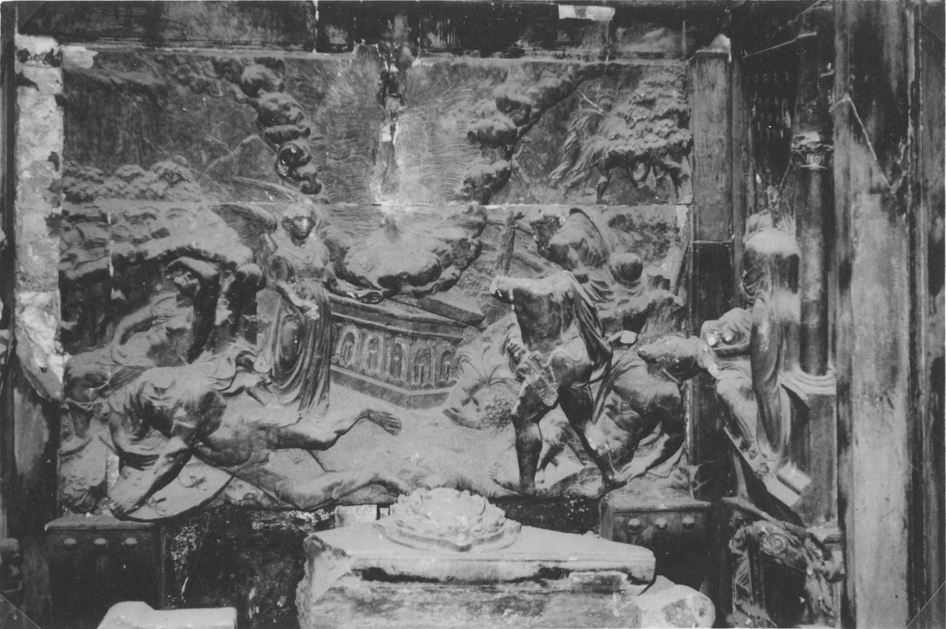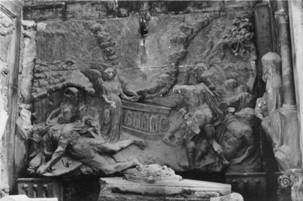 Die Mittelnische, 1952 (Hess. Baumanagement Kassel) Der Zustand der drei Reliefs blieb bis zur Restaurierung 2004